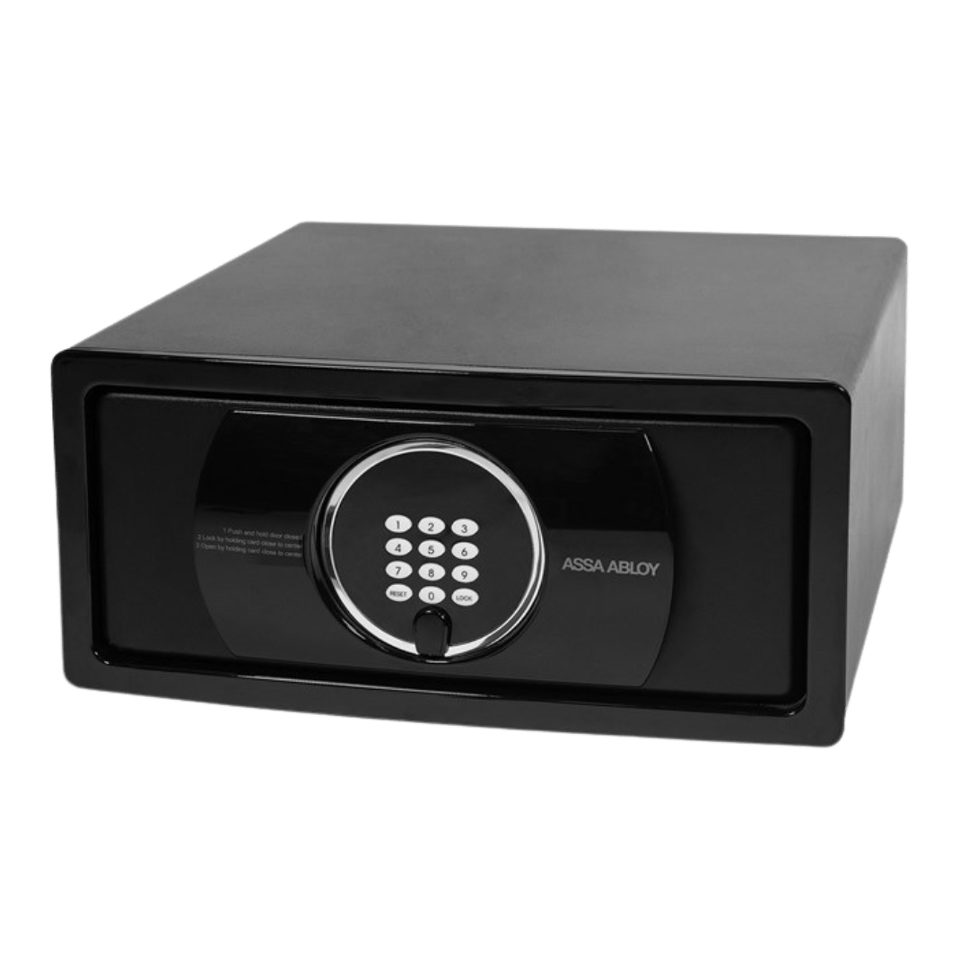 Gracias a su moderno y estilizado diseño, y a su teclado y visor iluminado en azul, las cajas fuertes para hotel Elsafe Infinity II marcan una nueva tendencia donde se unen la más refinada tecnología y seguridad con el buen gusto.