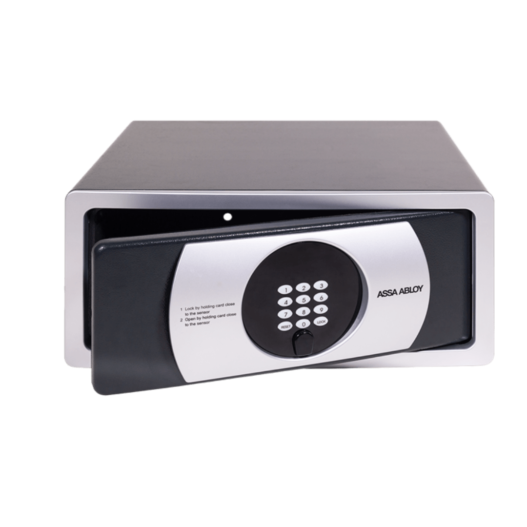 Gracias a su moderno y estilizado diseño, y a su teclado y visor iluminado en azul, las cajas fuertes para hotel Elsafe Infinity II marcan una nueva tendencia donde se unen la más refinada tecnología y seguridad con el buen gusto.